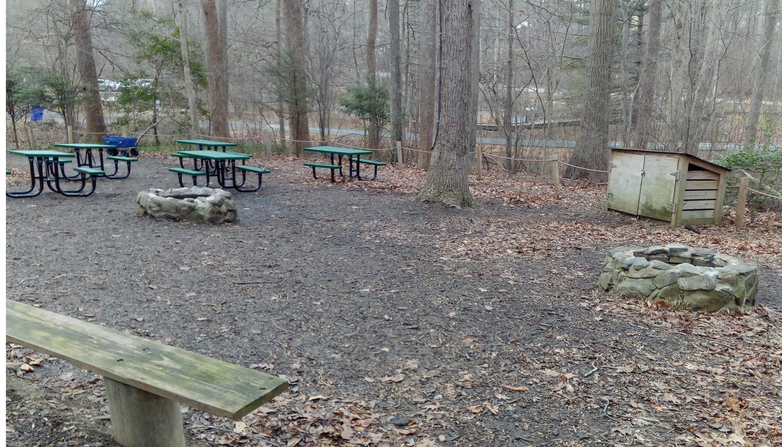 - Ample amphitheater-style bench seating, five outdoors tables, and two campfire rings.